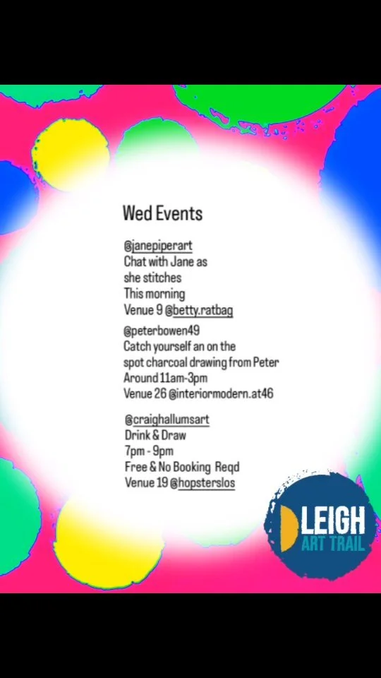 Until then, following the Trail on social media is the best way to keep up to date with all our exciting plans. Find the Leigh Art Trail on Instagram and Facebook for the latest news.